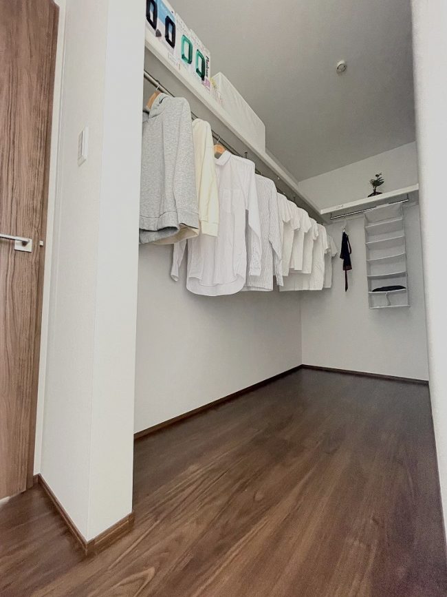 7.7帖の主寝室にあるウォークインクローゼットは広々としており、お洋服の収納が沢山可能です